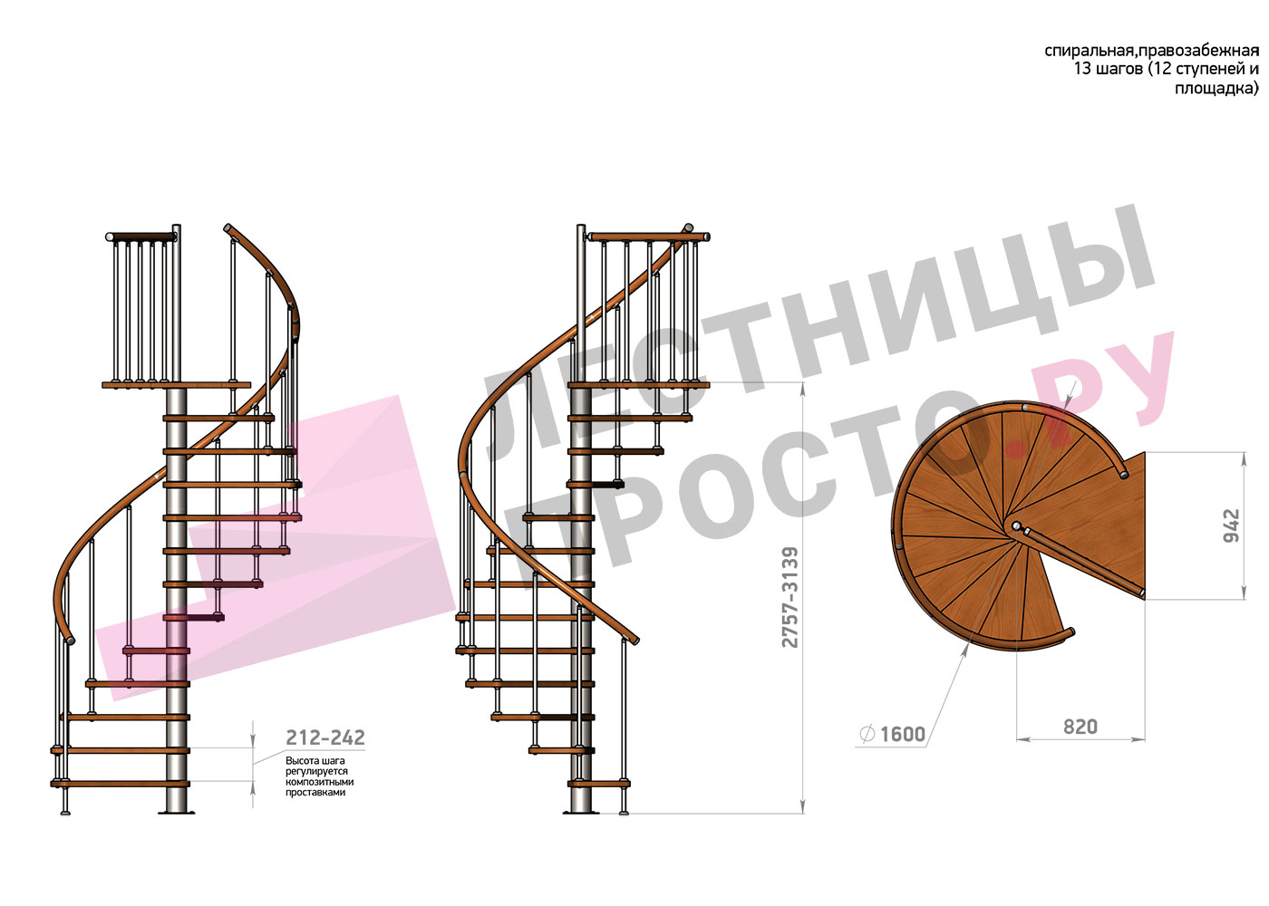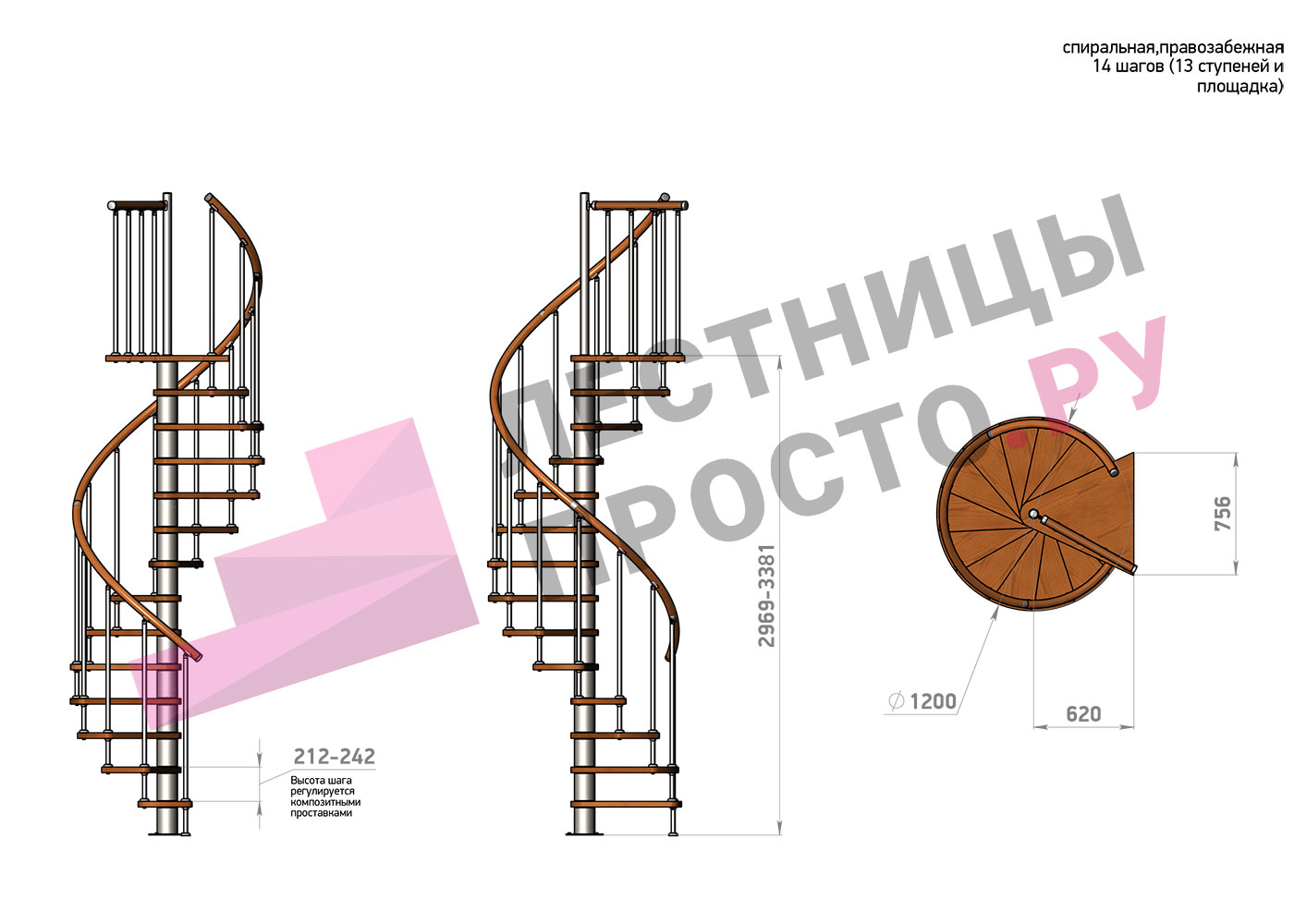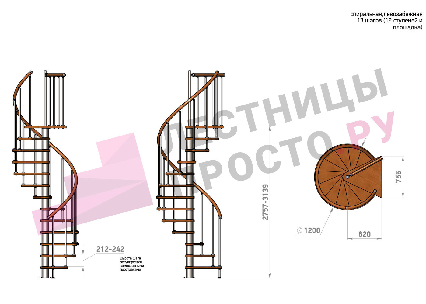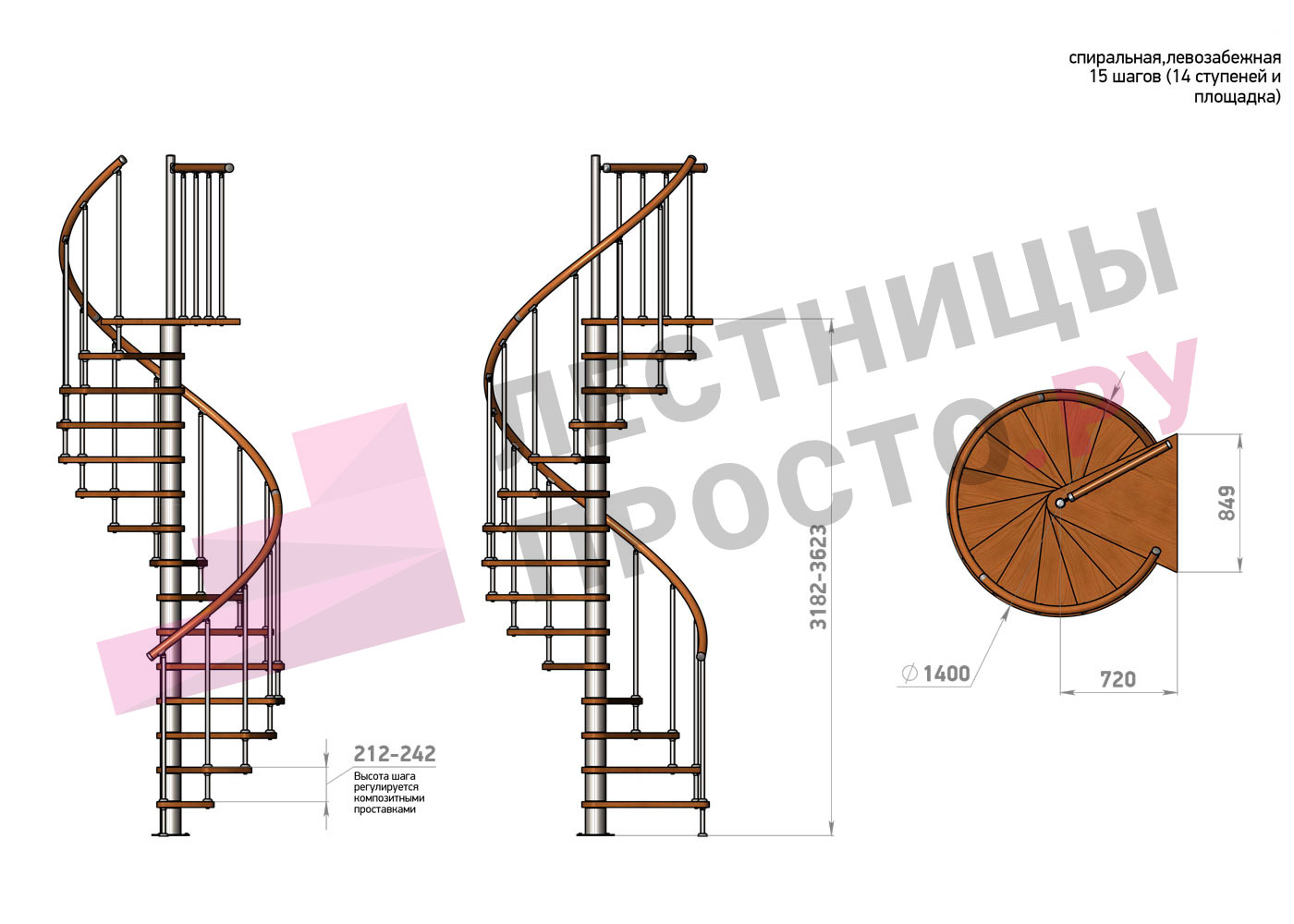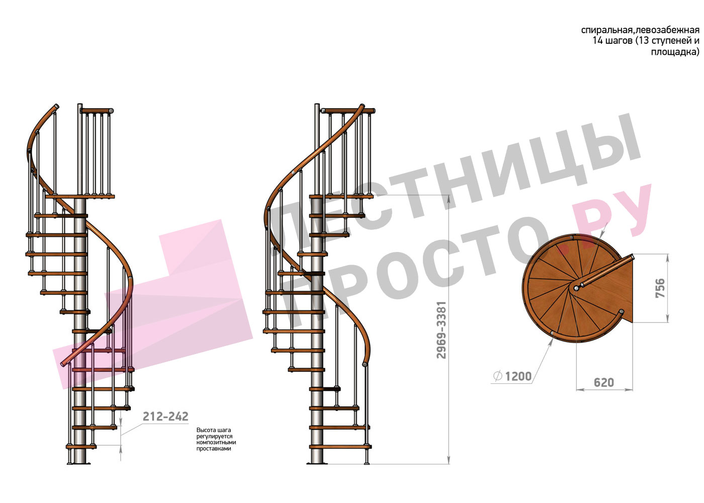 | Винтовая лестница Prosto Spiral Black D140см, h275.7-313.9 см |