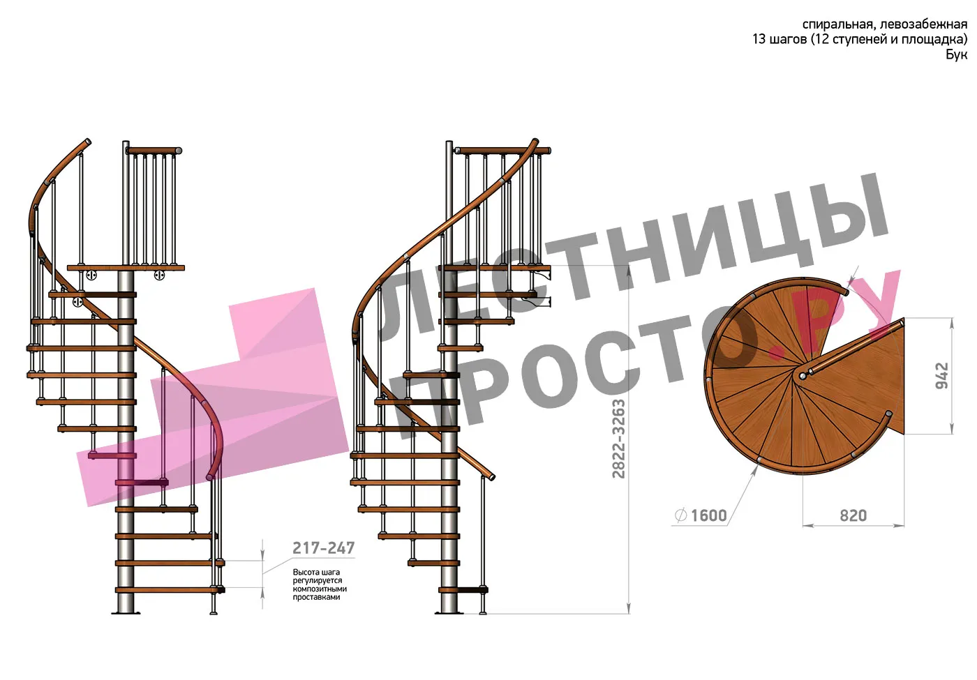 Правая, d=120см, 13 ступеней + площадка