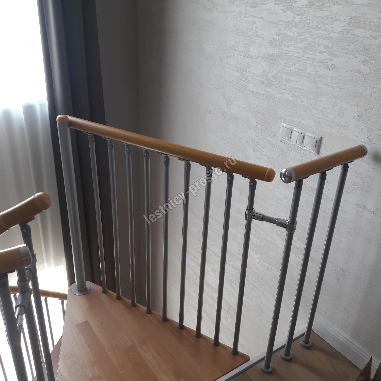 Лестница представлена в двух вариантах: с поворотом направо и с поворотом налево. Благодаря возможности регулировать высоту шага с помощью пластиковых вставок (входят в базовый комплект), высоту лестницы можно варьировать в пределах от 2860 до 3090 мм. Кроме того, купив дополнительную секцию для этой лестницы, можно поднять высоту до 3320 мм. Поручень изготовлен из массива дуба в тон ступеням. Ступени и поручень покрыты износостойким защитным лаком.