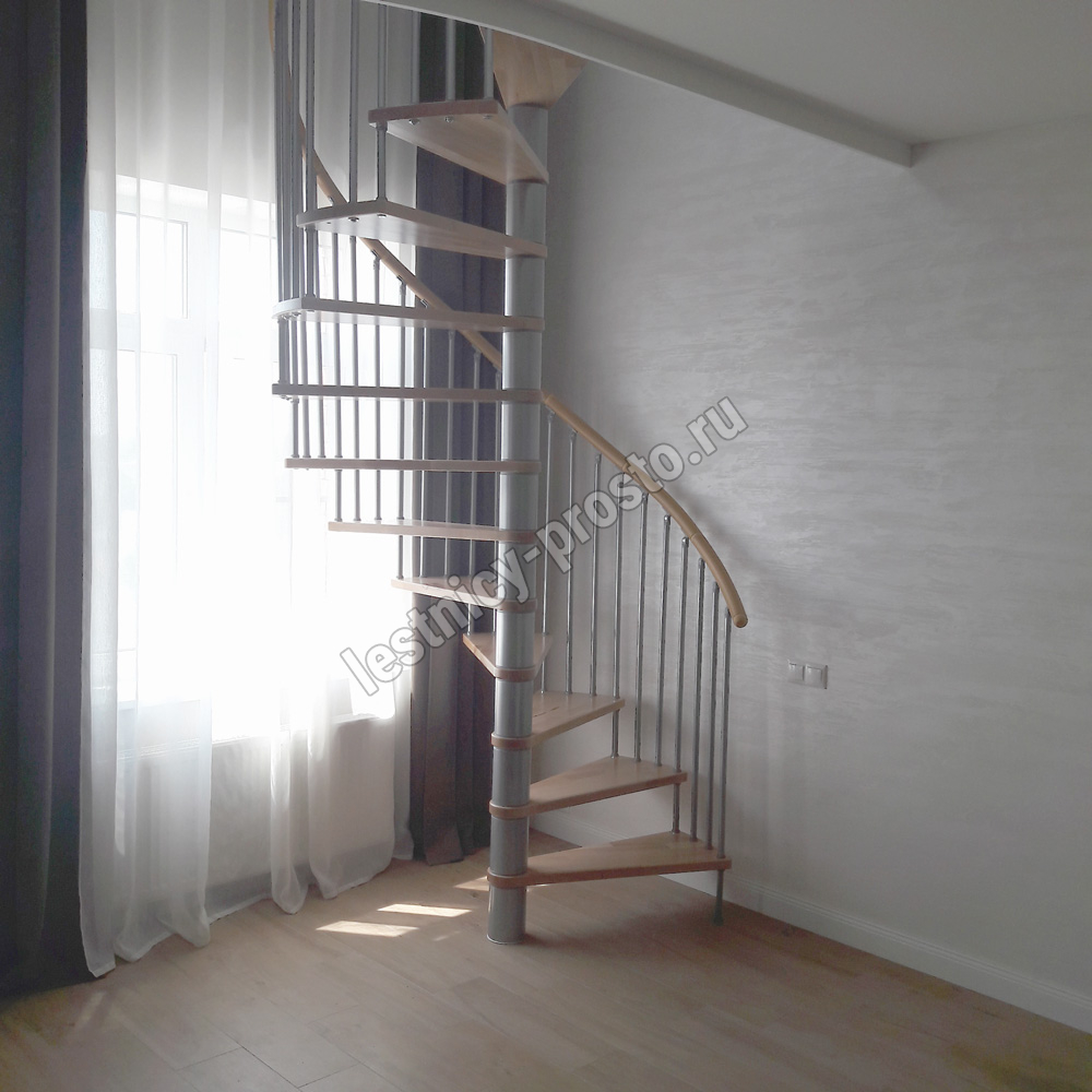 Винтовая лестница SPIRAL WOOD d140 см, серебро, лакированный дуб