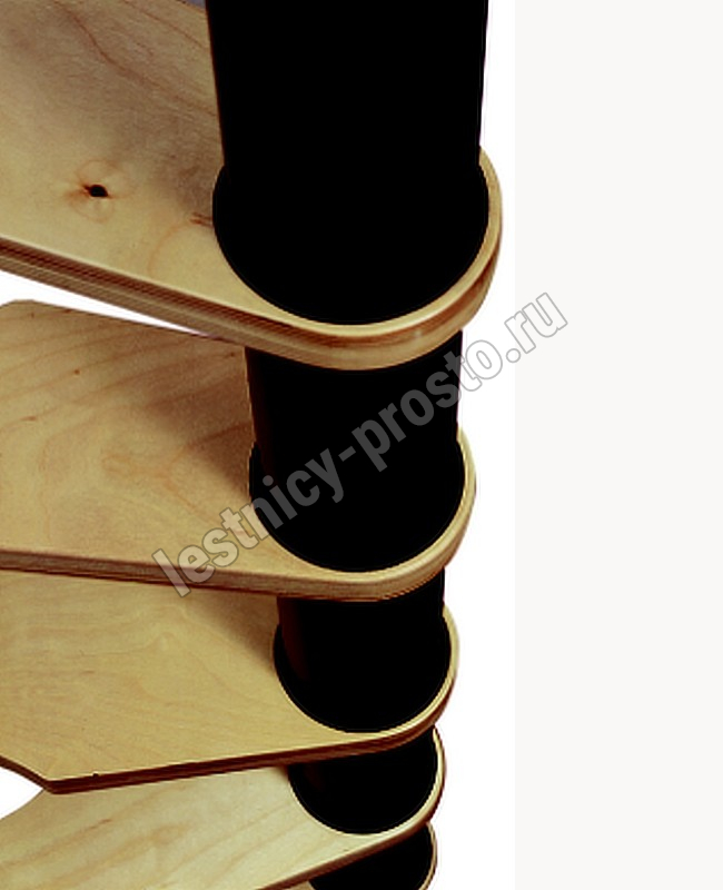 Компактная надёжная лестница. Ступени толщиной 30 мм, изготовлены из массива берёзы по технологии Multiplex, лакированные. Все металлические части оцинкованы, горячим способом и покрыты порошковой краской - черного цвета; Лестница имеет надёжную несущую стальную конструкцию.