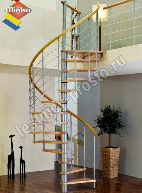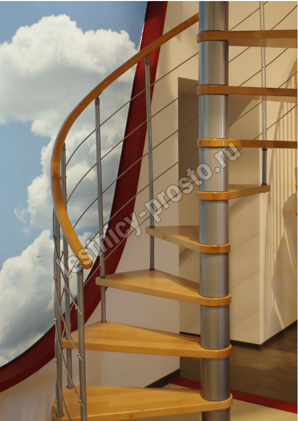 Винтовая лестница Venezia d140 см, серебро, бук лакированный